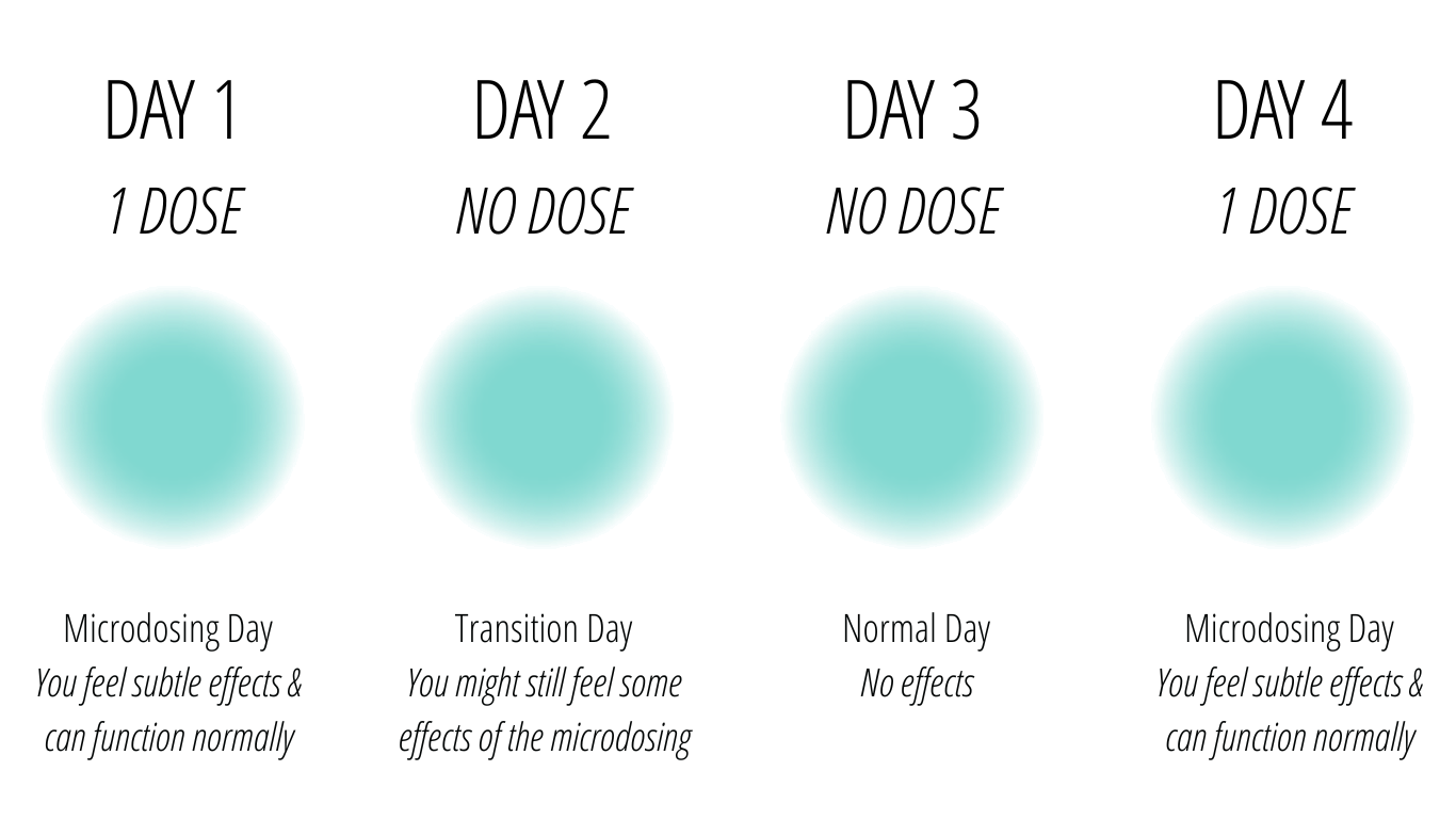 During these 6 weeks we’re going to follow the Fadiman Protocol, also known as the Beginners Protocol. It is the most well-known microdosing schedule named after Dr. James Fadiman.